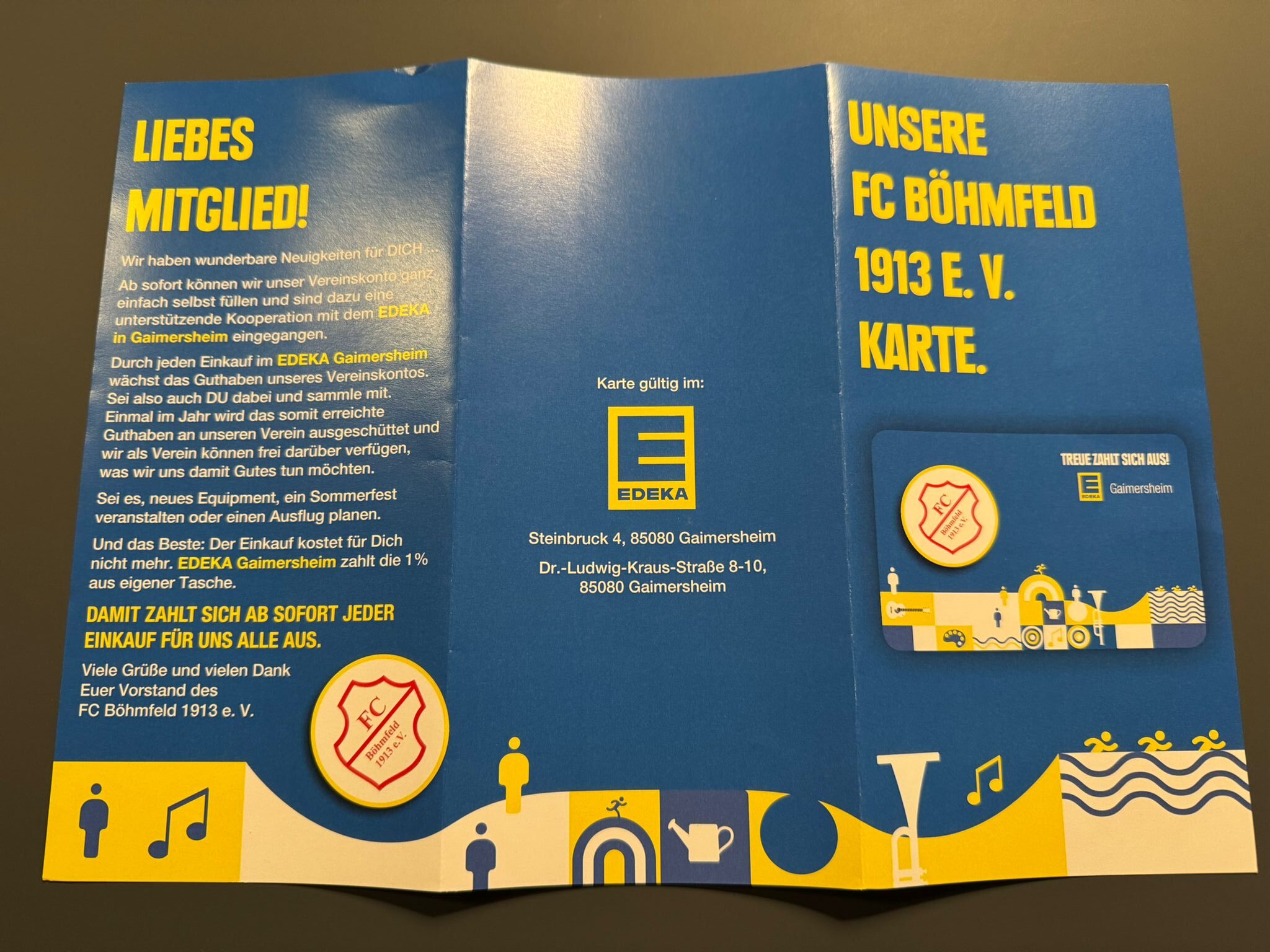 Edeka Südbayern unterstützt Vereine. Durch eine Kooperation zwischen dem FC Böhmfeld und Edeka haben wir eine begrenzte Anzahl an Vereinskarten bekommen.