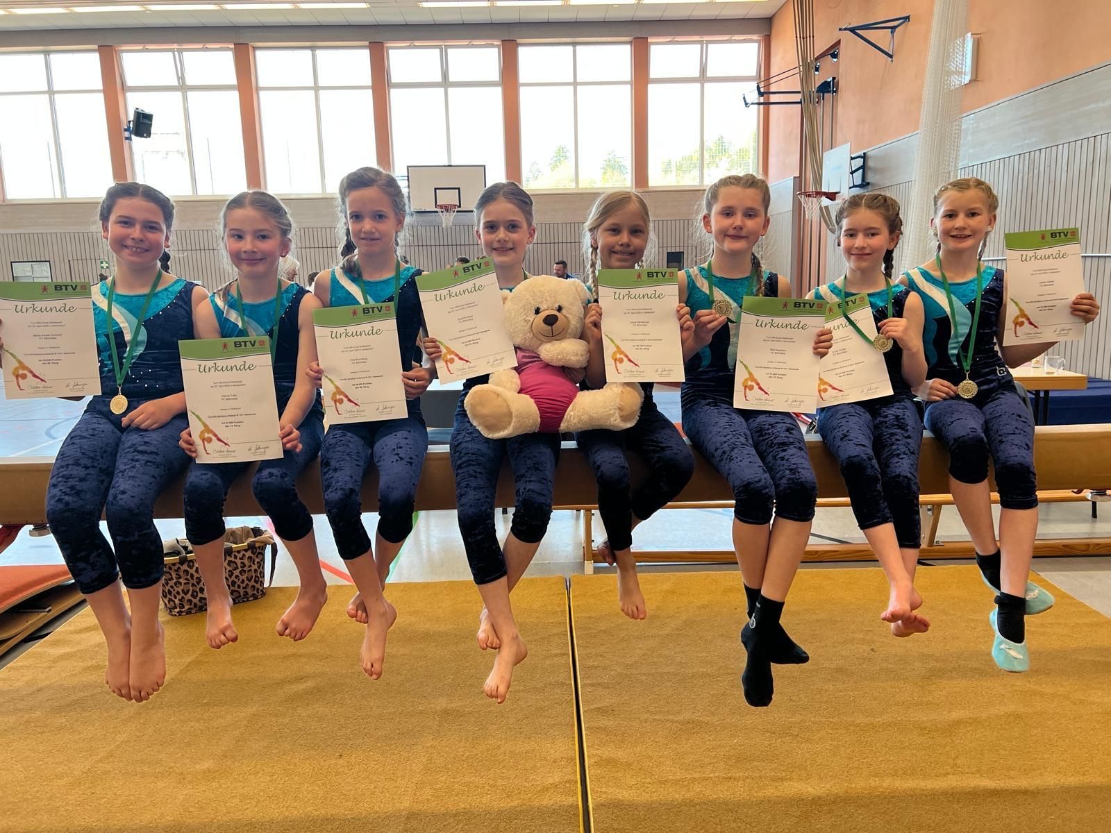 So war das Motto der Böhmfelder Geräteturnerinnen für den Turn 10 Einzelwettkampf in Denkendorf am Samstag den 25.04.2026. Der FC Böhmfeld trat mit 14 Kindern in den Disziplinen Reck, Balken, Trampolin, Sprung und Boden an. Für drei Turnerinnen war es der allererste Wettkampf und damit eine ganz besondere Erfahrung. Vor Zuschauern und Kampfrichtern ihr Können unter Beweis zu stellen, wird ihnen sicherlich noch lange in Erinnerung bleiben.