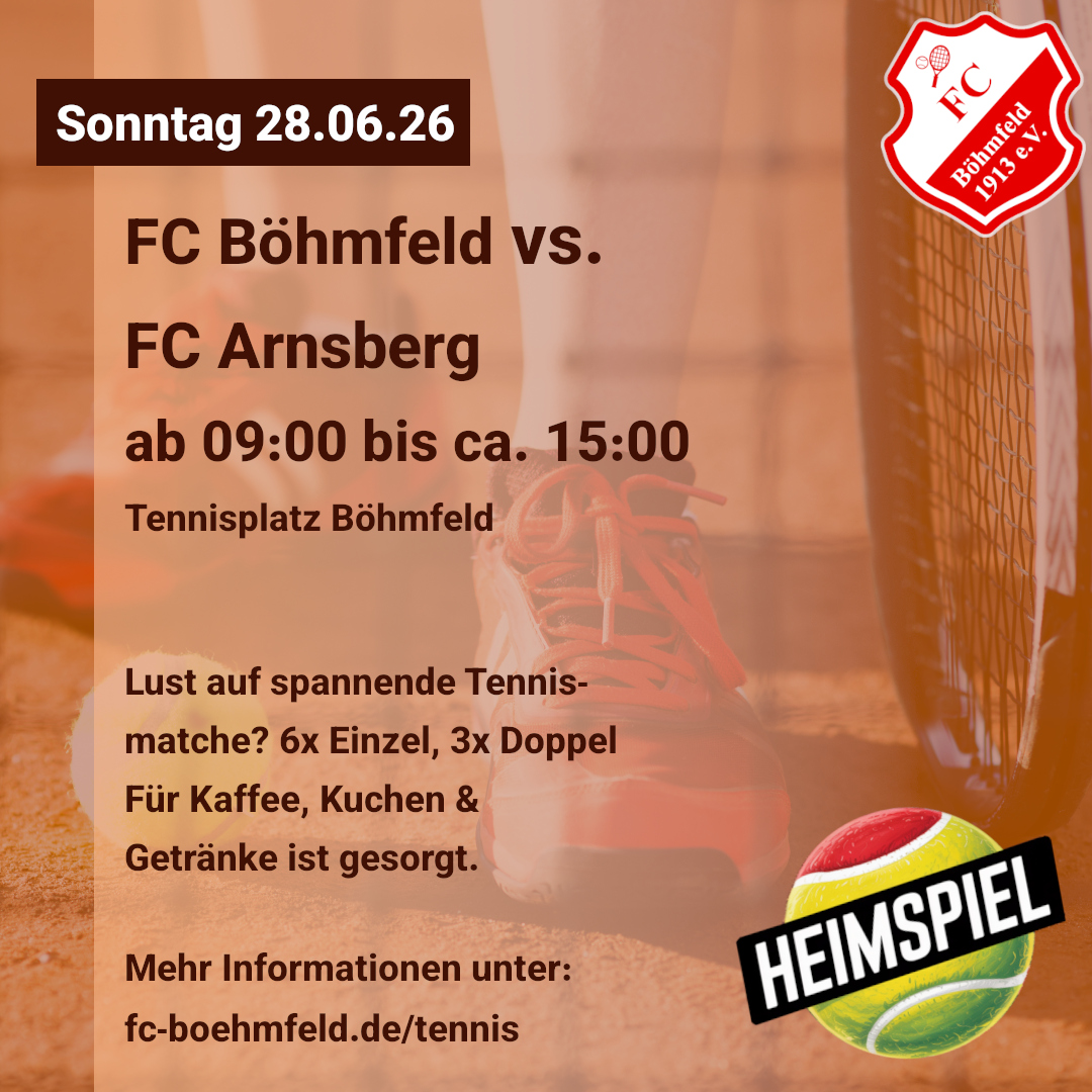 Tennis: Heimspiel gegen FC Arnsberg V (28.06, ab 9 Uhr)
